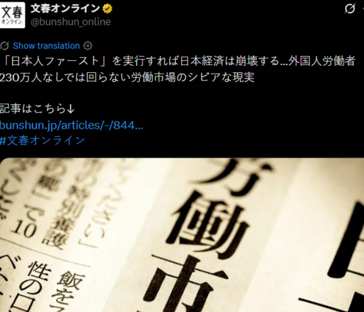 “日本人优先”口号喊响,日作家直言:驱逐外籍劳工=日本经济崩盘